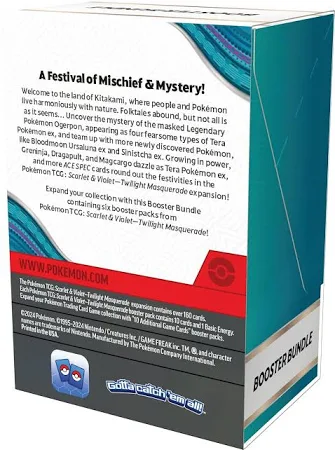 Join forces with newly discovered Pokémon like Bloodmoon Ursaluna ex and Sinistcha ex, while fan favorites such as Greninja, Dragapult, and Magcargo shine as dazzling Tera Pokémon ex. With the power of ACE SPEC cards making a bold return, the Pokémon TCG: Scarlet & Violet Twilight Masquerade expansion is filled with stunning art, thrilling battles, and collectible treasures.