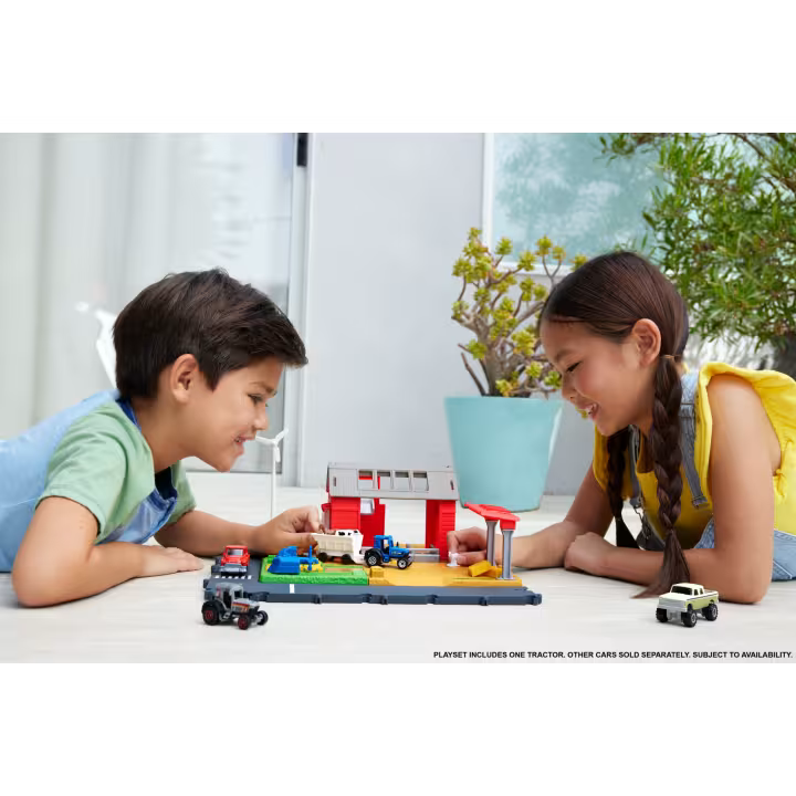 Bring the fun of farm life home with the Matchbox® Action Drivers Farm Adventure playset! Kids can drive the 1:64 scale tractor to plow fields, feed animals, and deliver hay bales, all while activating realistic sounds like a rooster crowing and a farmer at work. With kid- and car-activated features, detachable animal figures, and interactive accessories, this playset encourages imaginative storytelling and open-ended play.